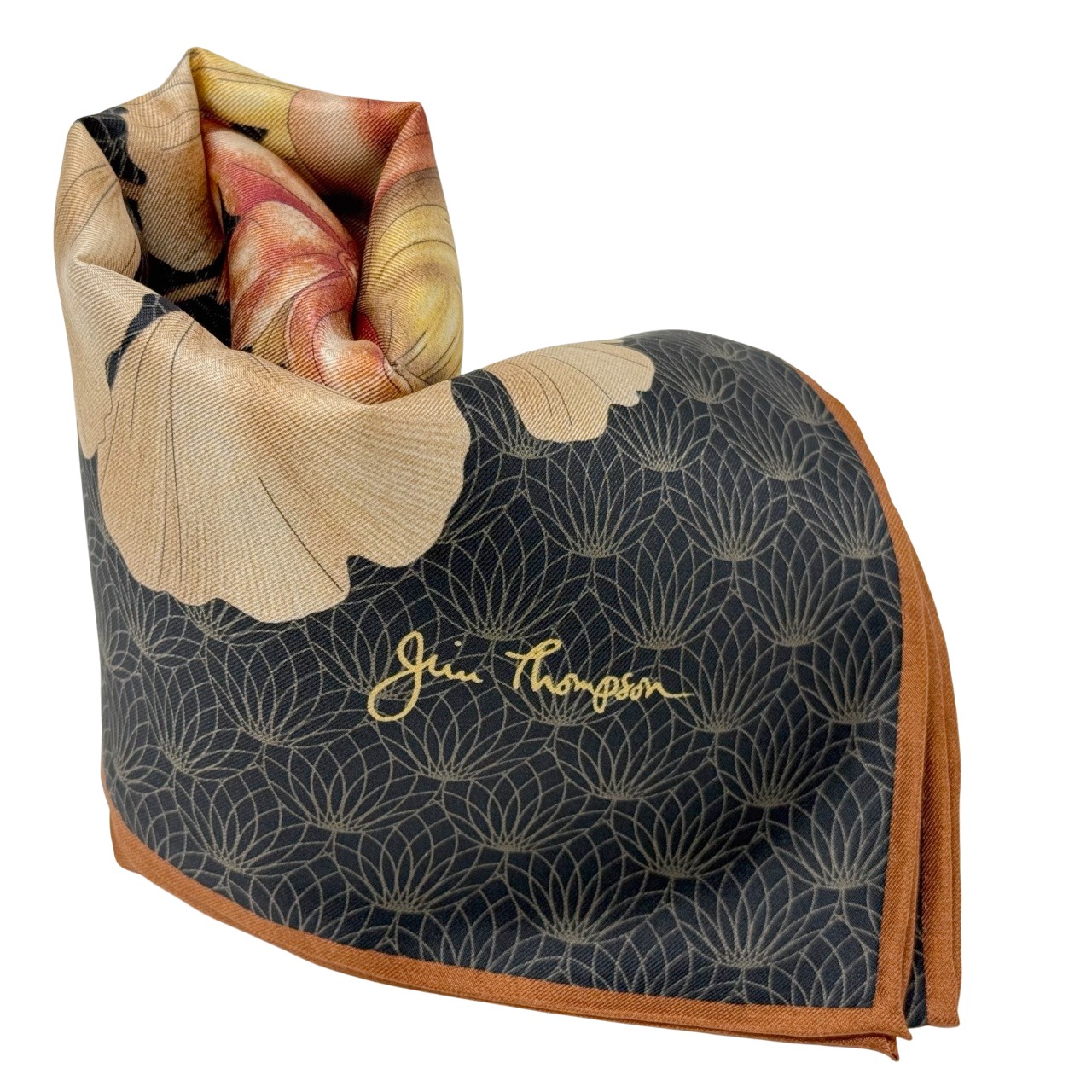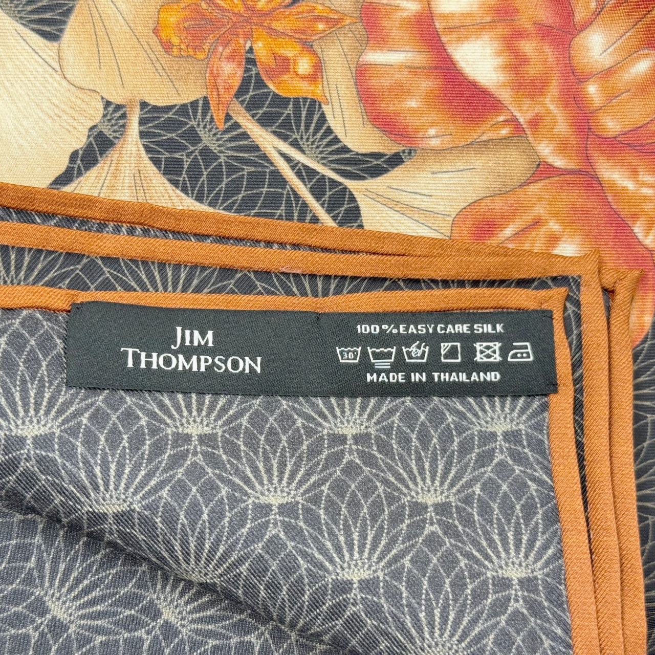 シルクスカーフ 花柄(黒・オレンジ) – ジムトンプソン【タイシルク100%】